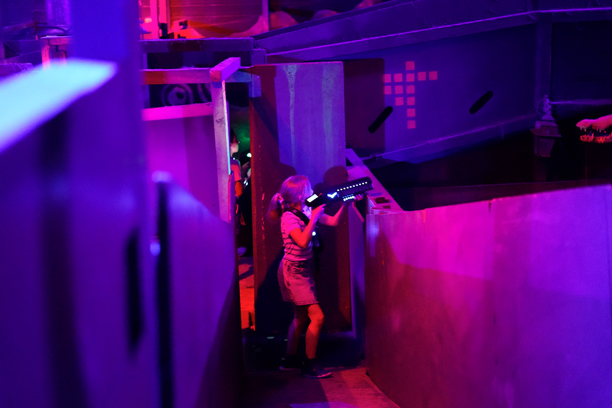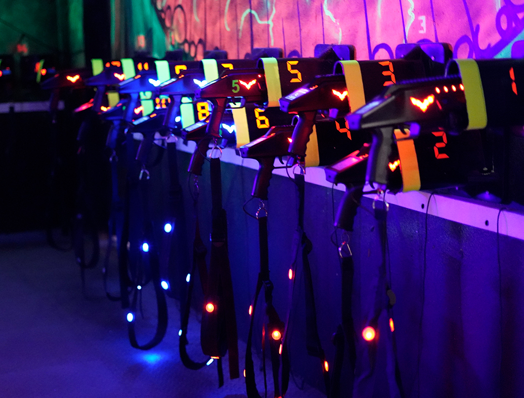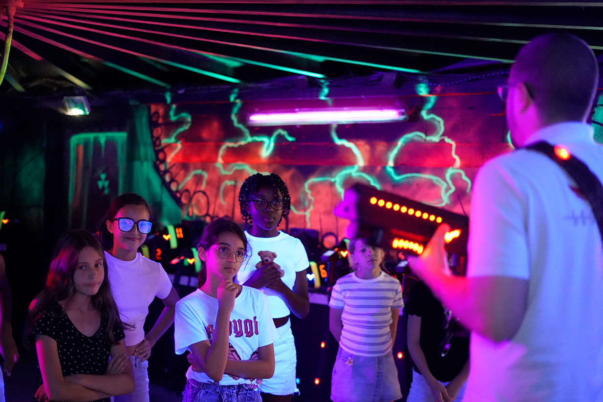 Équipé d’un harnais électronique et d’un pistolet laser haute technologie, tu deviens le héros de la partie.